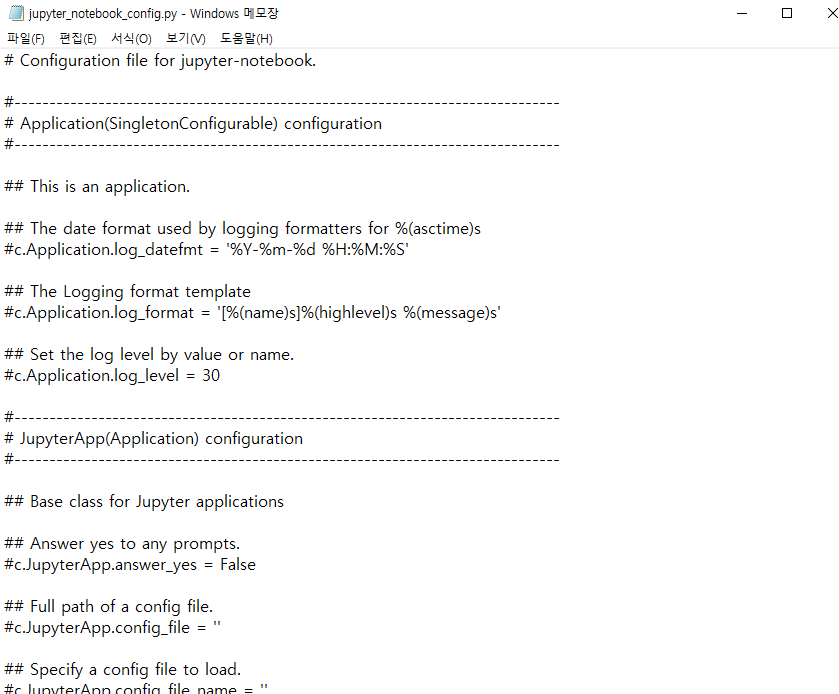 처음 Anaconda를 설치한 후 Jupyter Notebook 디렉토리를 보면 설정 파일이 없기 때문에 새로 생성해 준다.
